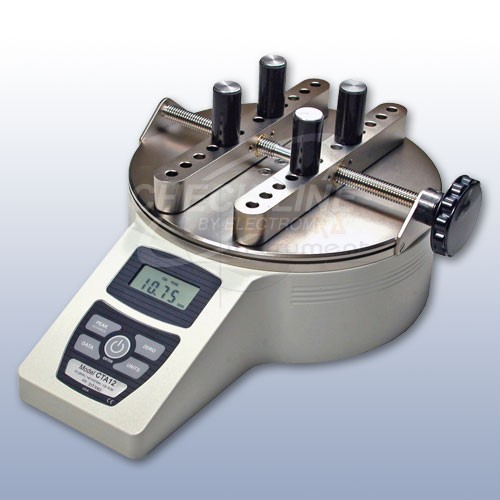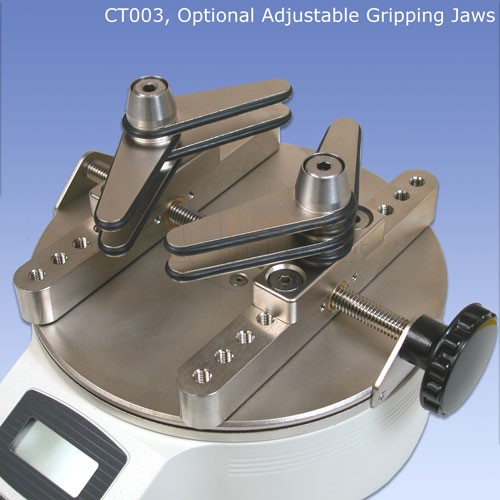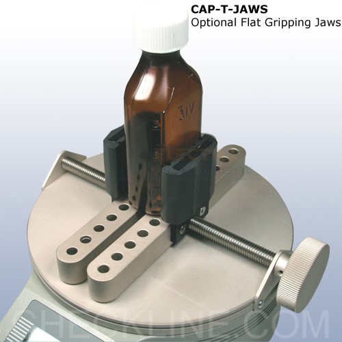 Data output via RS-232 and Mitutoyo enable reporting and analysis of test data via PC or other data collector. Adjustable posts effectively grip a broad range of container shapes and sizes, while a set of flat rubber-edged jaws are available for unique profiles. Innovative mechanical overload protection provides peace of mind.