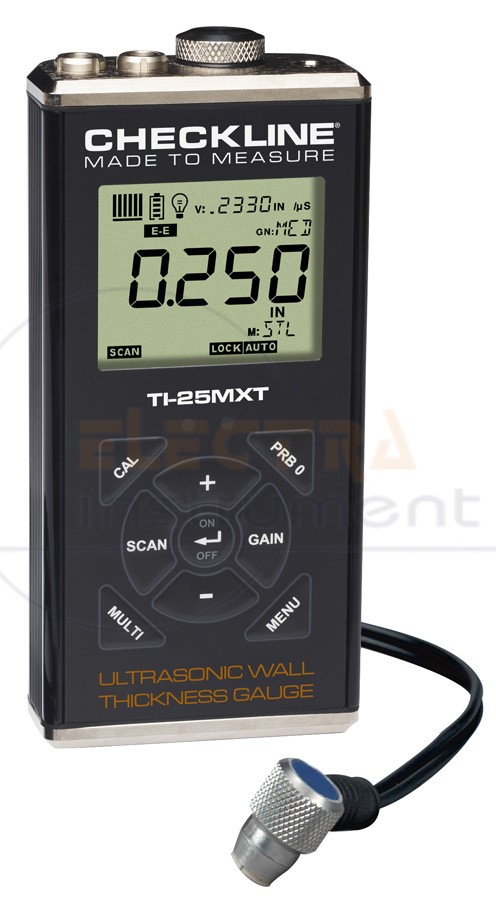 The new CHECK-LINE TI-25MXT Wall Thickness Gauge accurately measures wall thickness and the extent of corrosion of all metals, ceramics, glass and most rigid plastics from one side. When operated in E-E Mode (Thru-Paint Mode), the coating is eliminated from the reading and the gauge will display only the thickness of the metal wall.